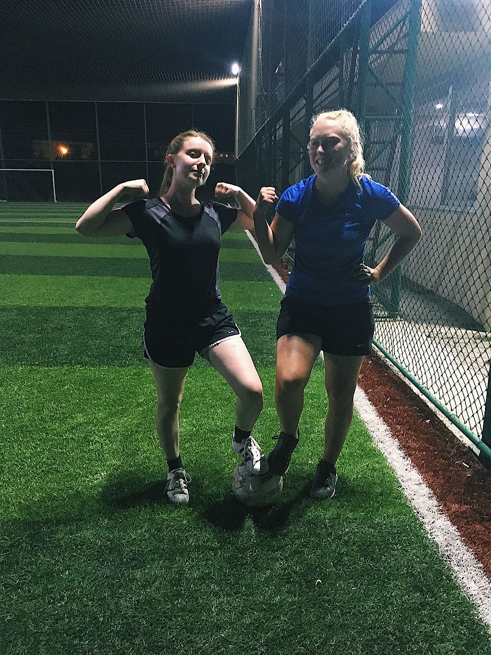 While the validation I got from my male teammates was rewarding, what filled me with absolute joy was seeing the excitement of the female Turkish students when Clara, Serap, and I stepped off the field. They had been cheering our names throughout the game, and I think every single one of them gave me a high five. Exhibiting feminism through action often has the side effect of empowering others. Case in point? Emine asked me through her Google Translate app to play football with her this evening. Hopefully this means that I'll have another teammate for next weekend.